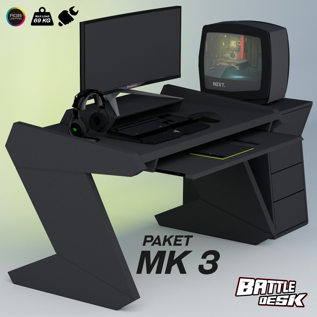 Harga Meja Komputer Gaming PC Desk RGB murah 128x80 Battledesk MK 3 HITAMRp2 999 000 Harga PAKET Meja Komputer Gaming PC Desk RGB 128x68 Battledesk MK 2 HITAMRp3 899 000 Harga Meja Komputer Gaming PC Desk RGB murah 120x60 Battledesk R 1Rp1 799 000 Harga Meja Komputer Gaming PC Desk RGB